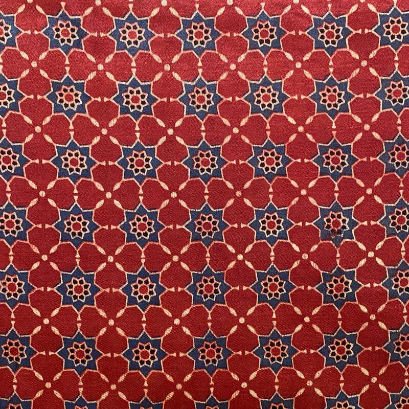 Mashru Silk Fabric, woven with perfect blend of silk and cotton. The outer fabric is of silk and inner is cotton, so you get luxury of silk and comfort of cotton. Printed with Ancient AJRAKH printing technique from the region of Kutch in State of Gujarat India. Using natural dyes and colours. Suitable for all clothing purposes.