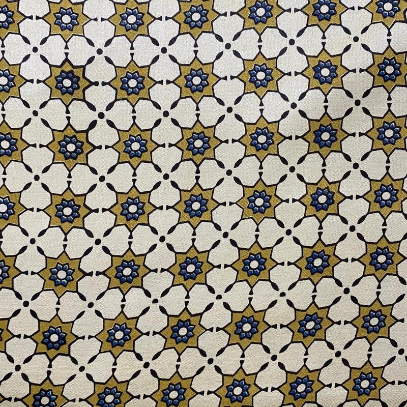 Mashru Silk Fabric, woven with perfect blend of silk and cotton. The outer fabric is of silk and inner is cotton, so you get luxury of silk and comfort of cotton. Printed with Ancient AJRAKH printing technique from the region of Kutch in State of Gujarat India. Using natural dyes and colours. Suitable for all clothing purposes.
